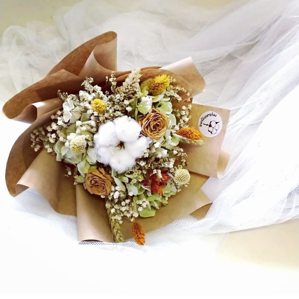 運用自然風乾的花材,扎作成精緻的小花束,適合約會、閏蜜之間的驚喜小禮物。